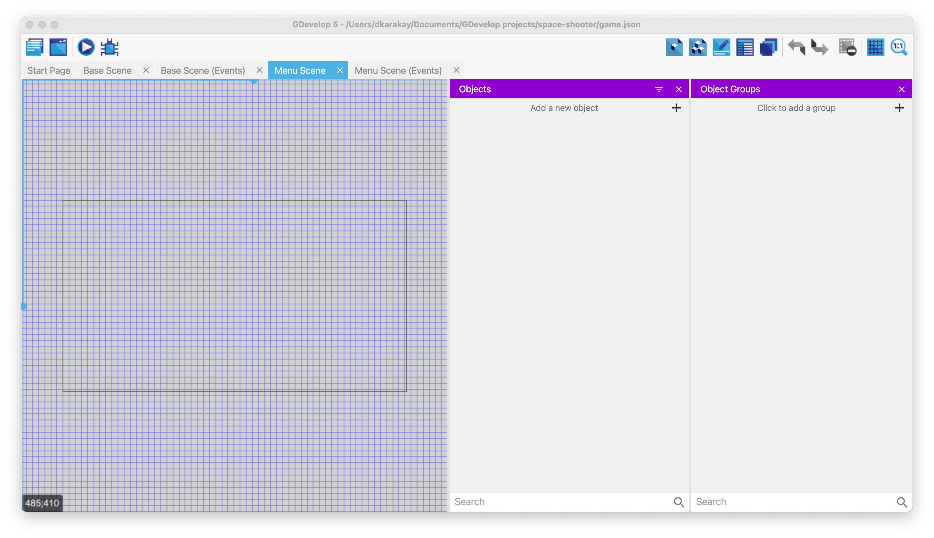 Then, create an object group for level objects called Levels.
